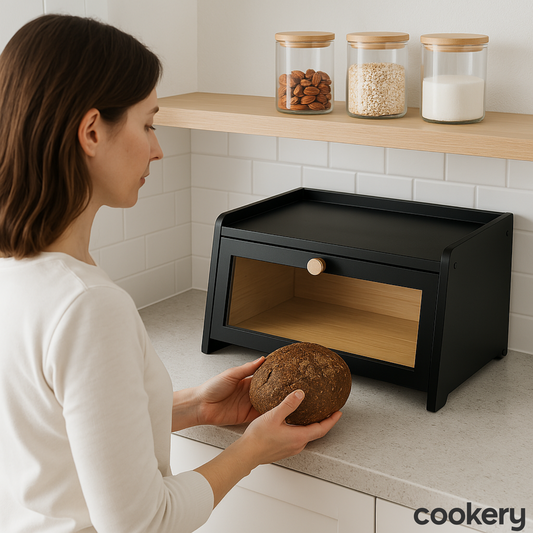 Brotkasten aus Holz mit 2 Etagen (schwarz)